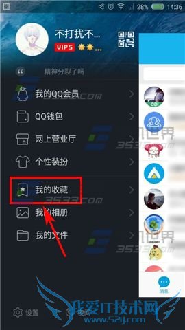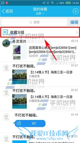 2)弹出菜单栏,点击【我的收藏】一项,跳转到收藏页面后,点击【收藏分组】。(如下图)