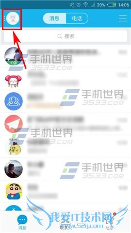 1)打开【手机QQ】,在主界面点击左上角的【头像】按钮。(如下图)