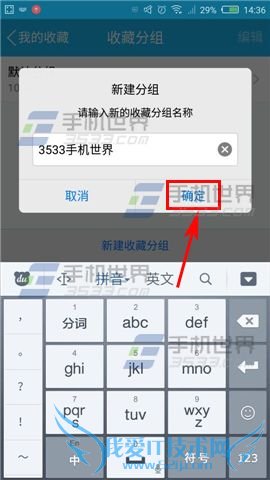 3)接着点击【新建收藏分组】,输入分组名称点击【确定】即可。(如下图)