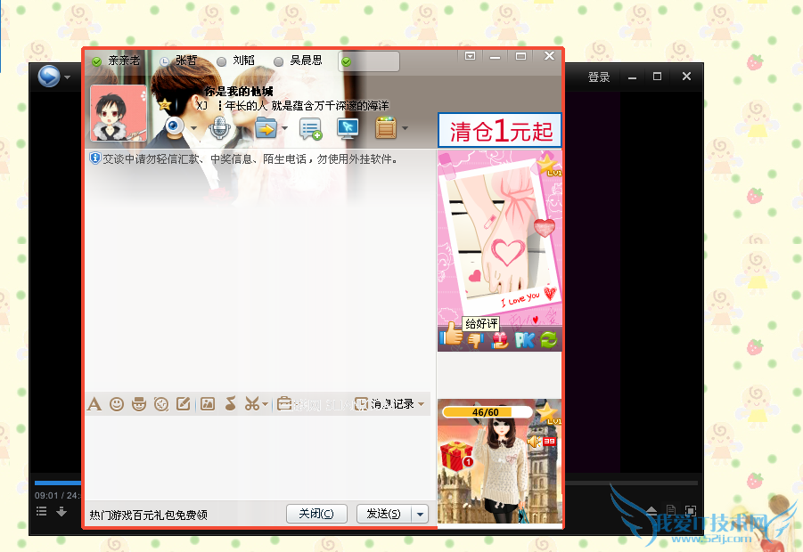 2、准备 把要剪切的视频调到对应的时间暂停,然后桌面上就留一个聊天窗口和播放器窗口。然后选择【录制视频动画】然后会出现红色的框框。