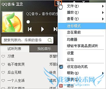 方法一:点击播放器主面板上的Mini模式按钮,可以切换到迷你模式。
