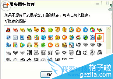第二步:点击“图标管理”标志后会跳转到以下页面,用鼠标点击QQ音乐的图标,即可隐藏。