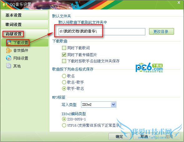 当然我们可以打开qq音乐,点最小化按钮左边的菜单--设置--高级设置--下载设置--默认文件夹,就可以看到缓存文件的存放位置啦。