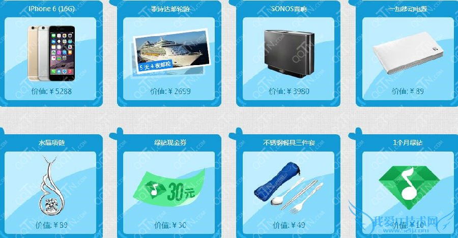 QQ用户在活动页面支付1Q币即可随机获得以下礼物,包括1个月绿钻、移动电源、iPhone6等奖品,100%中奖,拼人品的时刻到临啦!
