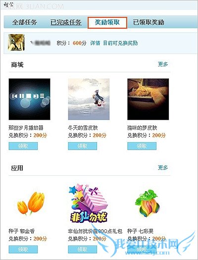 第四步:用做任务获得的积分兑换(即领取)物品。