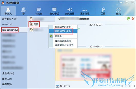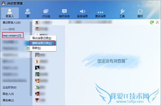 也可以选择某个好友点击右键删除某一好友的聊天记录。
