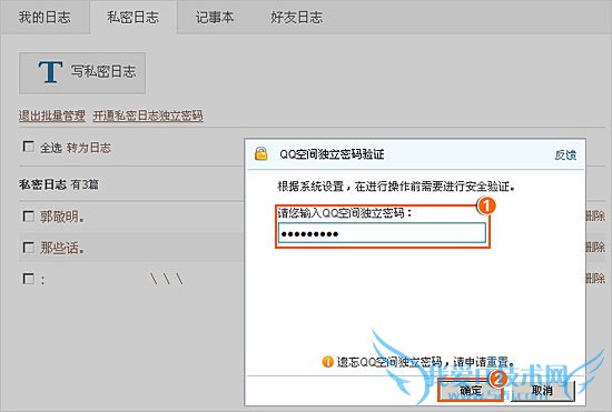 5、输入独立密码即可开启进入私密日志时,需要输入空间独立密码的功能;