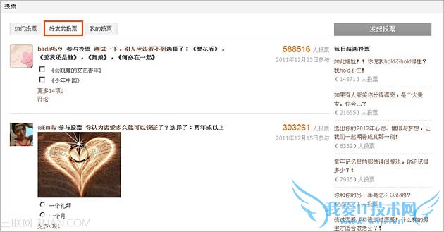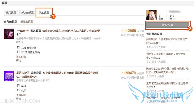 二、点击“我的投票”可以看到‘我参与的投票’和‘发起的投票’,也可重新发表新的投票问题;