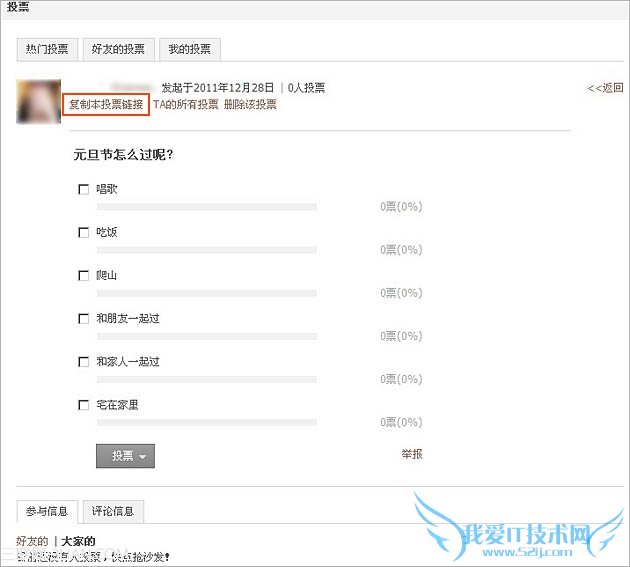 四、发布投票成功后,您可直接将您的投票链接给到好友,邀请好友回答。(小纸条、QQ留言、邮箱发送均可)