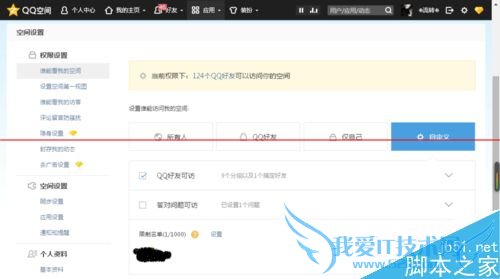 1、首先打开QQ空间,点击右上角“设置”(齿轮样标志),点击设置中的空间设置,进入下面界面