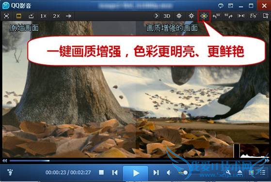 中秋出行,好山好水好风光,虽然只有三天的假期,可一路上总有让人惊喜的故事不断的发生,既然是出来玩,当然免不了拍些好玩的视频,录制一路上的精彩,回家可以慢慢回味。可出门在外,光线把握不好,DV不时晃动,让拍摄的效果打了折扣。对于不专业的人群来说,拍摄的效果总会有些遗憾。不要紧!QQ影音一键画质增强,智能调节画面的亮度、饱和度以及其他参数,能让画质更加明亮鲜艳,专业效果可以有!(图1)