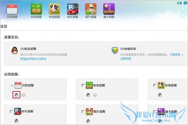 QQ闹钟提醒功能开启方式:登录QQ闹钟,点击右上角“设置”=》将