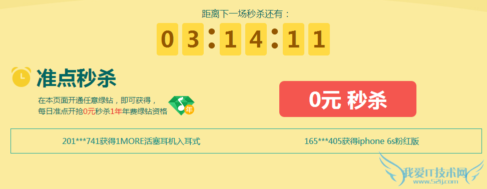 在本页面开通任意绿钻,即可获得,每日准点开抢0元秒杀1年年费绿钻资格。