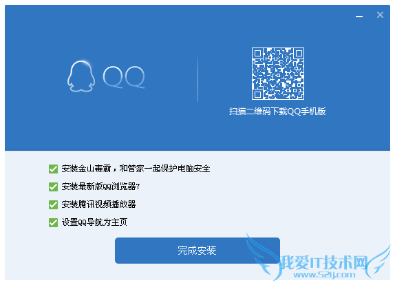 3、安装完成,推荐安装金山毒霸、QQ浏览器、腾讯视频以及设置QQ导航为主页,全部都可以取消的