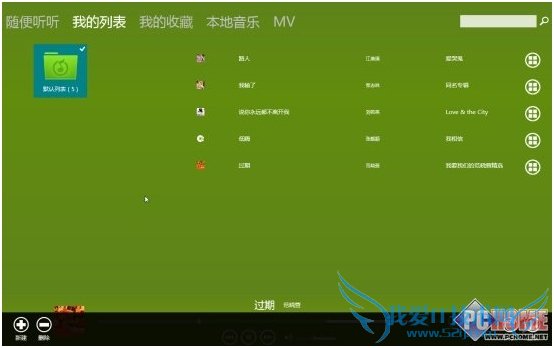 如果你刚才有添加过某些歌曲到“我的列表”,那么切换到我的列表界面下就能看到它们了。此时歌曲名右侧的按钮变成了删除用途。