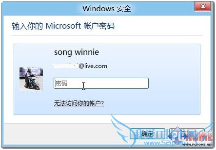 4、输入你的 Microsoft 账户密码(即Windows Live ID密码),稍等片刻后会收到许可证提示。