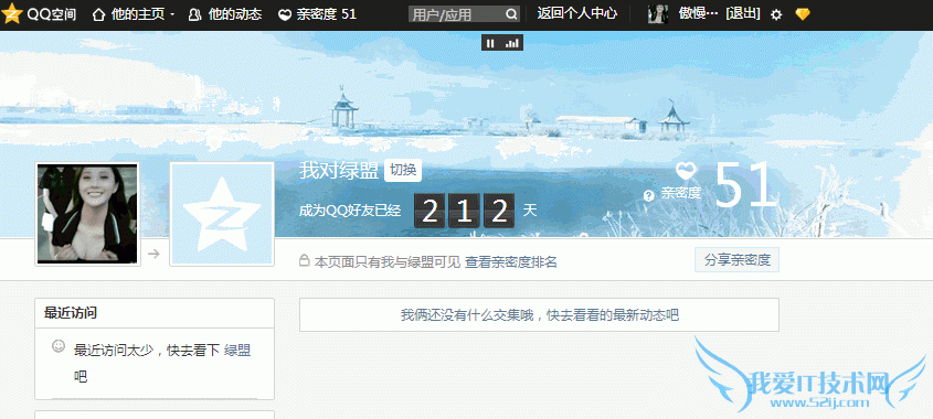 还有个方法就是进入他的QQ空间,空间上方也有一个亲密度的按钮。点击进入一样能看到。