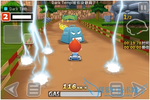 试玩中,QQ卡丁车的游戏手感中等偏上,但QQ卡丁车也给了我不少惊喜。比如,转 弯、加速都很灵活,既能触摸操作也能选择使用重力感应来操作汽车。