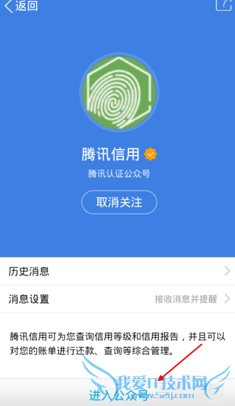 关注腾讯信用之后,接下来我们再从最下方的这个入口点击【进入公众号】
