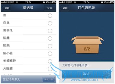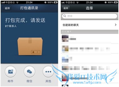 我们可以通过这个功能自行选择联系人或者将联系人全部打包进行发送,发送到方式分为两种:邮件&微信,如果接收方同样是iPhone用户,可以将这些联系人信息进行去重导入,整个操作流程非常方便。(后续将支持Android系统导入)