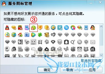 标志时,说明选择图标为隐藏状态,隐藏成功后您的QQ好友就看不到您的微信图标了:
