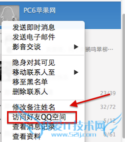 第五步:怎么进好友的空间,随便右键点击一个好友的头像,就会出现进入该好友QQ空间,点击即可进入。