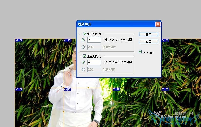 然后再打开PS软件,选择切分工具,拉选全部图片,