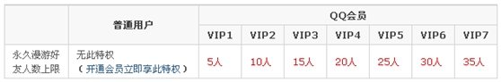 3、消息记录漫游的好友上限由VIP6的30人上升至35人,提升幅度跟QQ等级加速一样都是有规律可循的。