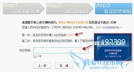 第四步:将手机上显示的6位动态密码输入到网页上,点击【完成】。