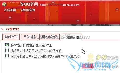 之后便是伪装QQ头像下方显示的QQ空间更新,用户首先进入自己的QQ空间中,切换到“个人中心”选项,点击其中的“权限管理”并切换到“QQ相关设置”选项中。取消其中的“将QQ空间日志更新在QQ上”选项。好友便无法再QQ头像下方看到最新的QQ空间内容更新提示了(如图3)。