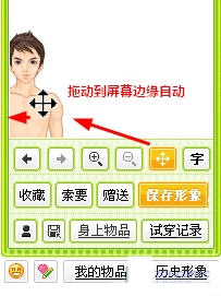 其实设置方法同样非常简单,点击自己的QQ秀形象,自动打开QQ秀商城,点击页面左上方QQ秀相关操作中的“拖动”按钮,此时直接将其拖动到屏幕边缘,即可自动隐藏(如图5),日后若想恢复显示,点击“恢复状态”按钮即可重新显示QQ秀信息。