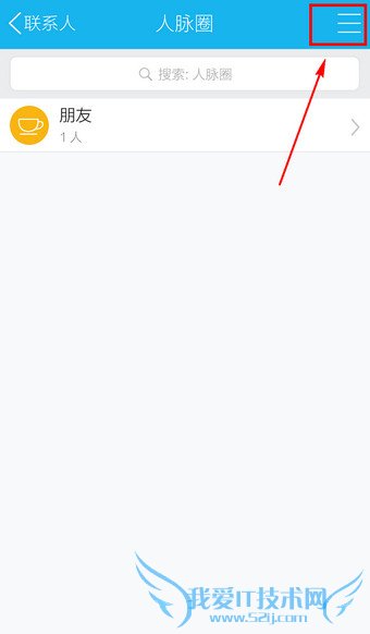 进入【人脉圈】后,选择页面右上角的【菜单】图标