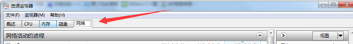 3、进入资源监视器主界面之后,我们在上方的菜单栏里面找到网络选项,点击进入网络详细信息界面。
