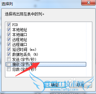 5、在列属性窗口里我们把,下边的接收,发送,总数选项前面的勾给打上,方便我们获得详细信息,便于搜索。