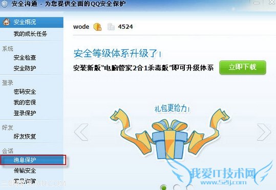 2.我们就进入到安全栏设置了,然后选择“消息保护”。