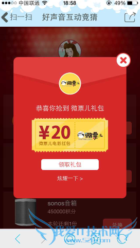 4、直接获得了价值20元微票儿礼包,可以再购买电影票中直接抵现,当然,还有其他奖品,大家自己把握吧!