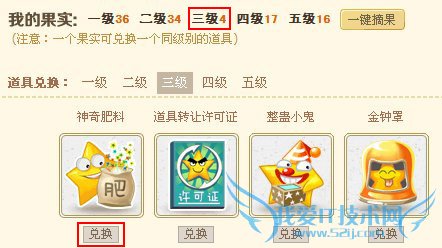 在看到我们现在的数值,没看到数值满,接着我们点击花藤界面中的藏宝阁,我们就可以看到一键摘果,然后我们利用果实的等级兑换QQ空间神奇肥料。然后我们在下面使用,如图所示:
