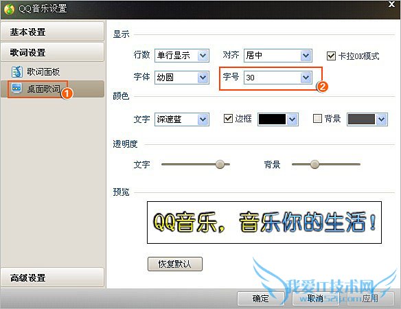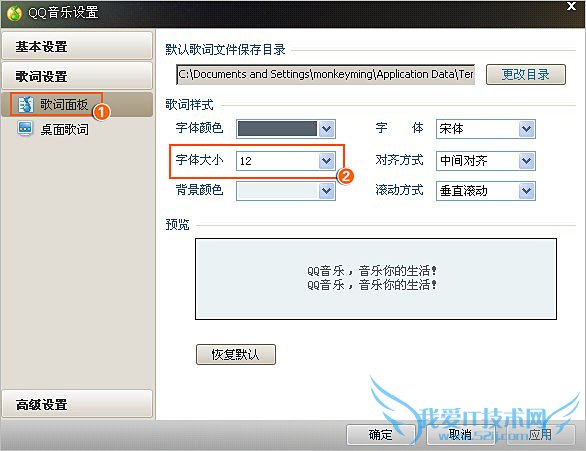 ¡¡¡¡1¡¢ÔÚ¸è´ÊÃæ°åÏÔʾ´¦£¬µã»÷Êó±êÓÒ¼ü£¬Ñ¡Ôñ¡°ÉèÖÃÃæ°å¡±(ͼÀýΪQQÒôÀÖ2012°æ±¾);