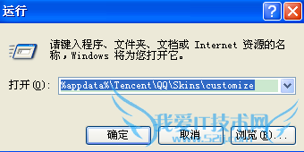 第二种方法:在打开“开始”——“运行”,输入代码:%appdata%TencentQQSkinscustomize 确定之后也可以打开目录了。这样会比较快捷。