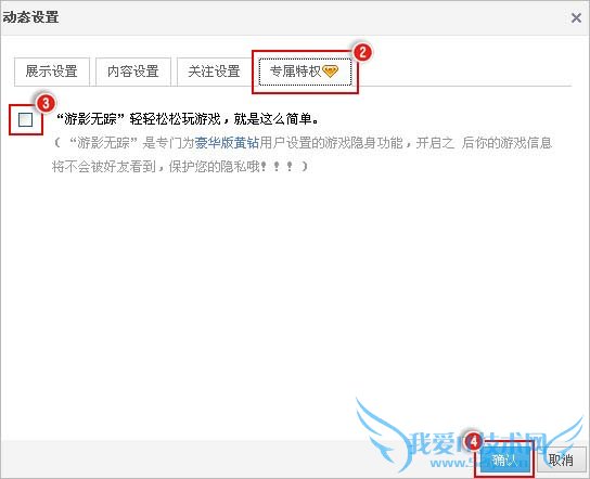 ¡¡¡¡1¡¢Ó¦ÓÃÓÎÏ·µÄÒþÉí£ºµÇ¼QQ¿Õ¼ä½øÈë¡°¸öÈËÖÐÐÄ¡±=¡·µã»÷¡°¶¯Ì¬ÉèÖá±=¡·×¨ÊôÌØÈ¨£¬ÈôÄúÒѾÊǺÀ»ª°æ»Æ×êÓû§£¬Ö±½Ó¹´Ñ¡¡°ÎÞÓ°ÎÞ×Ù¡±Ñ¡Ï¿ªÆôºó£¬ÄúÔÚÓÎϷʱ½«²»»á±»ºÃÓÑ¿´µ½;