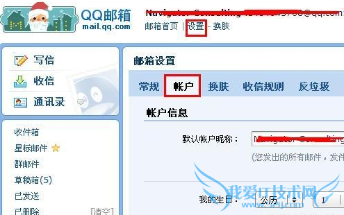 1、个性qq邮箱有三种,分别是英文邮箱帐号、foxmail邮箱帐号和手机号邮箱帐号,申请方法如下,先登录qq邮箱,点击左上角用户名下的设置,选择邮箱设置下的账号。