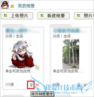 1、进入http://photo.qq.com/后,在我的相册下。点击您所要设置权限的相册,把鼠标放在相册上,显示出“小锤头”标识后,再次点击。