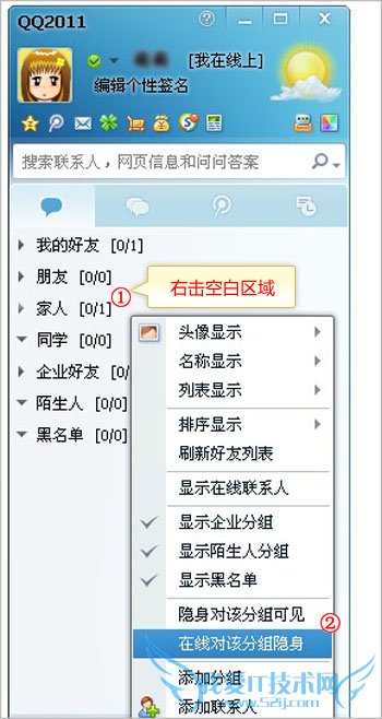 QQ2010正式版SP2.1或以上版本实现分组设置,具体操作如下: