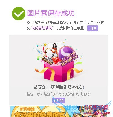 保存成功后,刷新下自己的QQ秀,这时QQ秀就变成你上传的图片了。