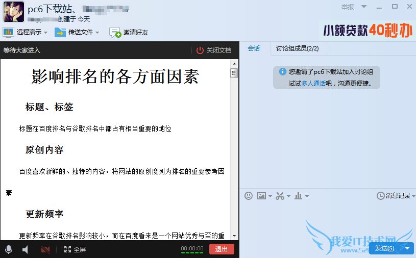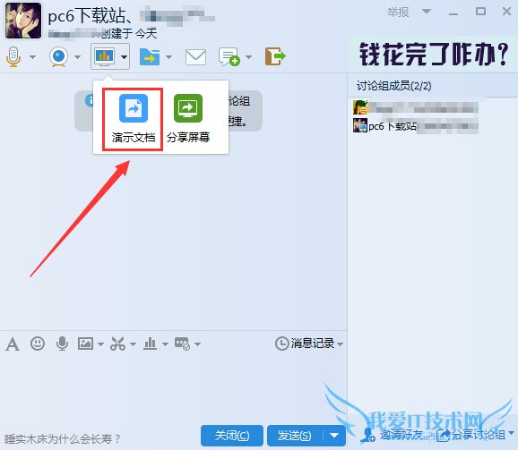 1.我们将自己的QQ版本升级到6.5以上!新版本都可以使用文档演示功能!