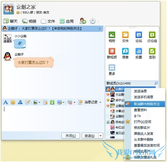 群支持“特别关注”设置,鼠标右键点击群成员,可对TA设置特别关注,再也不会错过TA的发言。
