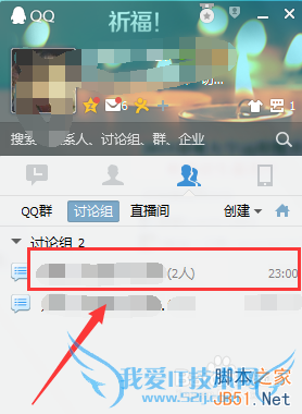 2、在出现的QQ群面板中,找到讨论组 ,并选中它
