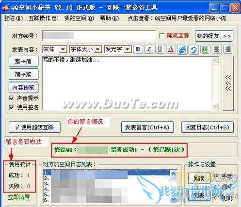 简单、方便、快捷的几步就能达到留言的效果,是不是很有意思。那么用这款软件怎么回复好友发表的日志呢?大家接着往下看。