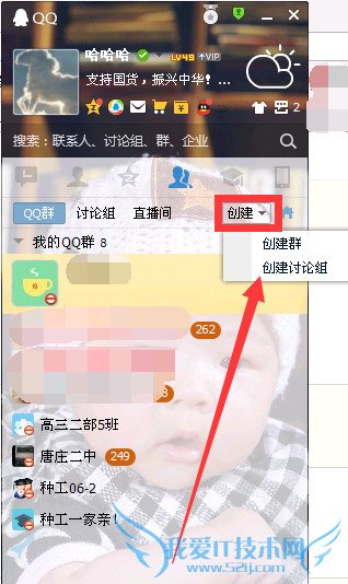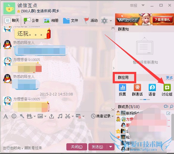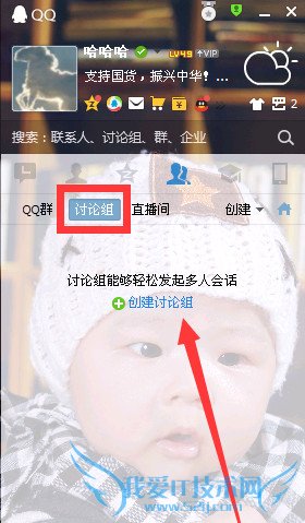 5、如果您想在群中创建讨论组,也是可以的。首先进入到群聊天页面。在群应用中找到讨论组,点击它