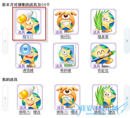 点击以后就会出来很多的道具,我们选择领取第一个醒目灯,如下图所示